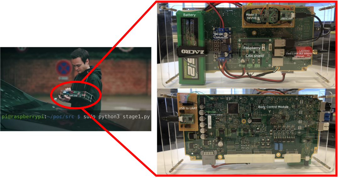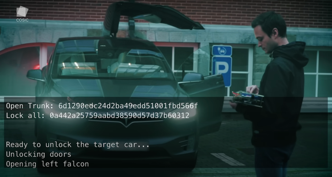 Youtube: COSIC researchers hack Tesla Model X key fob[9]
