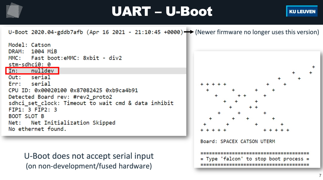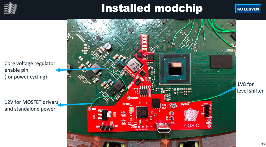 • 利用代码:修改的固件未公开,但自研的modchip(故障注入设备)公开了设计:KULeuven-COSIC/Starlink-FI[3]