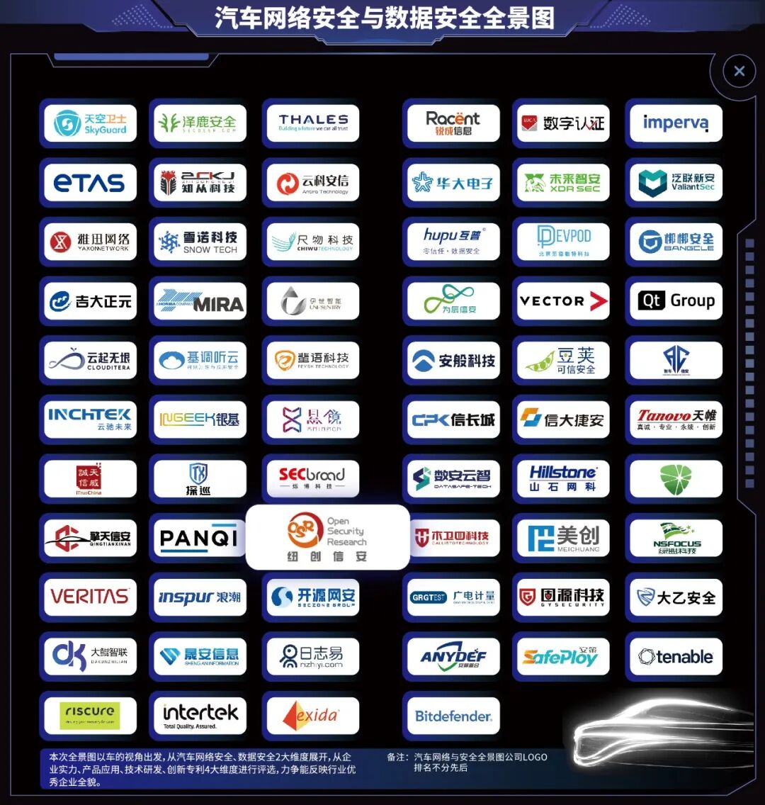 首批入选单位 作为密码技术研发、产品和解决方案提供商,纽创信安建立了汽车领域全局系统化密码视角,产品和服务覆盖从芯片IP与安全方案到芯片安全攻防技术,以及密码模块等,还提供芯片安全渗透测试设备,这有助于检测和防范潜在的安全威胁,增强汽车芯片的安全性。纽创信安的产品和服务旨在为汽车行业提供从硬件到软件、从芯片到云端的全方位安全保护。 分享——产业特征分析 在首批入选单位的评审期间,基于对100+企业提交的全景图申报资料的数据分析,谈思发现,中国汽车网络安全与数据安全产业目前主要呈现以下几点特征: 01 新锐安全厂商抢占先机,老牌安全厂商强势布局 2017年6月1日,我国《网络安全法》正式实施,标志着我国网络安全产业正式进入快车道。同年9月,中国汽车网络安全产业开始启蒙之路,部分新锐企业加快入场。由此,业内普遍认为2017年是中国汽车网络安全市场的重要时间点,被称为真正的产业元年! 同时,此次全景图申报资料的分析结果也显示,2017年以后汽车网络安全与数据安全相关企业如雨后春笋异军突起,占所有申请企业的38.1%,而2017年及以前成立的企业,除了ETAS、Vector等国际企业,其他大都是横跨多个领域的传统安全厂商,并于近几年陆续布局汽车网络安全相关的业务。 以擎天信安、大鲲智联、智车信安等为代表、专注智能汽车网络安全与数据安全领域的新锐厂商,凭借前瞻的市场需求洞察,以破竹之势抢占了市场份额。其中更是有83.3%的厂商在短短几年之内,就发展为千万、乃至亿级别的产业领头羊。由此可见,近几年汽车安全产业处于爆发式增长阶段,市场日新月异,后劲很足! 而以绿盟科技、吉大正元等为代表的传统网络安全方案公司,在洞察到汽车网络安全产业可观的市场潜力后,凭借多年跨领域的安全技术积累和品牌影响力也强势入局,进一步壮大了我国汽车网络安全与数据安全产业生态的发展。 02 这是研发为王的市场,以创新驱动产业发展 在电动化、智能化的技术变革下,车企们除了在销量和营收上较劲,研发上也“卷”得更激烈,这使得汽车网络与数据安全厂商深刻理解要通过持续不断的研发创新,才能在市场竞争上利于不败之地,并已实际多年持续高投入研发。 据不完全统计,申报入选首批全景图单位的企业中,研发人员占比过半的企业有68.25%。如ETAS、Vector、Bitdefender、纽创信安、软安科技、蜚语信息、擎天信安、知从科技、华大电子等。 得益于充分的研发及技术人才储备,这些安全厂商可提供的产品服务也十分全面。 如云驰未来的拳头产品包括合规服务与工具链、智能汽车信息安全Framework;维克多提供的产品服务则覆盖了产业全领域,如咨询服务、嵌入式软件、代码测试工具、诊断安全等;纽创信安的适用于车载信息安全的eHSM IP(嵌入式高性能安全模块),符合汽车行业共识的EVITA规范,能够嵌入到车载MCU(微控制单元)/SoC(系统级芯片)中,提供必要的密码与安全功能,同时该产品的开发和设计也符合功能安全的要求,为汽车芯片提供“双安全内核”。 汽车安全企业正在不断通过多产品矩阵逐步获取车企客户的高度认可。 03 产业分布呈聚焦态势,北京、上海、广州遥遥领先! 据全景图资料的数据显示,中国汽车网络安全与数据安全相关的高新技术企业主要分布在北京、上海以及广东地区。 其中,北京作为中国的政治文化和科技创新中心,一汽、北汽、长城等车企所配套的车企研发机构、技术资源和人才储备,为这些安全厂商提供了良好的发展环境,如擎天信安、木卫四、大鲲智联、未来智安等,北京也由此以38%的安全厂商占比遥遥领先其他地区。 而拥有奇瑞、吉利、上汽、特斯拉等车企坐镇的长三角地区,一样吸引了大量产业链相关的技术企业,成为磐起、安般、Tenable.等一众新锐安全厂商总部落户地。其中,作为中国经济中心之一的上海更是集聚了30%的安全厂商,ETAS、Vector等全球头部企业也不谋而合地落户上海。 广东地区则围绕广汽、比亚迪、小鹏等车企形成了配套的汽车网络安全产业链,如Bitdefender、大乙安全、纽创信安、为辰信安等;长安、东风等车企产能主要分布的中部地区,则有开源网安、软安科技、尺物科技等代表企业为整车厂商的安全需求保驾护航。 除了成熟汽车产业基础和丰富的技术资源,政府的大力支持和政策引导也是这些地区,尤其是北京和长三角,成功吸引大量汽车网络安全厂商扎堆落户的积极因素。 如北京市自动驾驶办公室发布的《北京市智能网联汽车政策先行区数据安全管理办法(试行)》、《北京市智能网联汽车政策先行区数据分类分级管理细则(试行)》,浙江省网信办发布的《浙江省汽车数据处理管理规定》、上海市人常发布的《上海市智能网联汽车示范运营实施细则》、《上海市浦东新区促进无驾驶人智能网联汽车创新应用规定》等。 这些法规条例的发布,为智能网联汽车网络安全及数据安全的高质量发展提供了坚实保障。