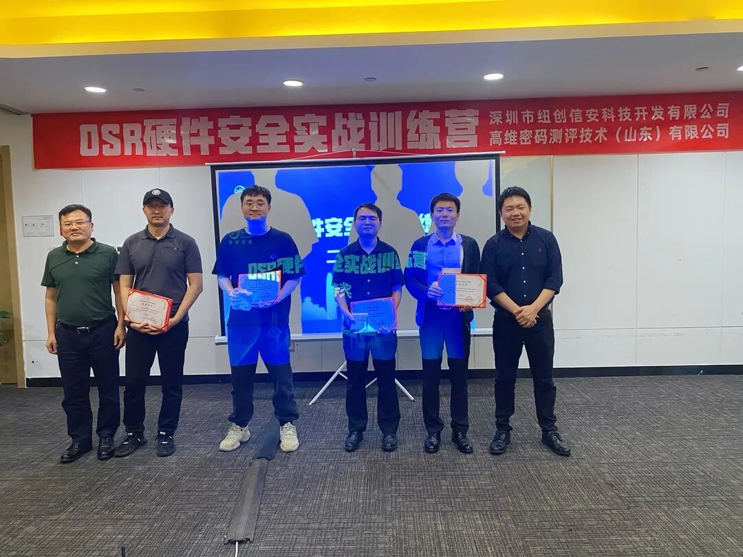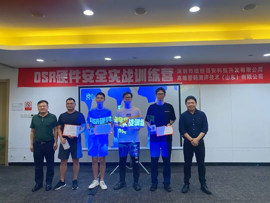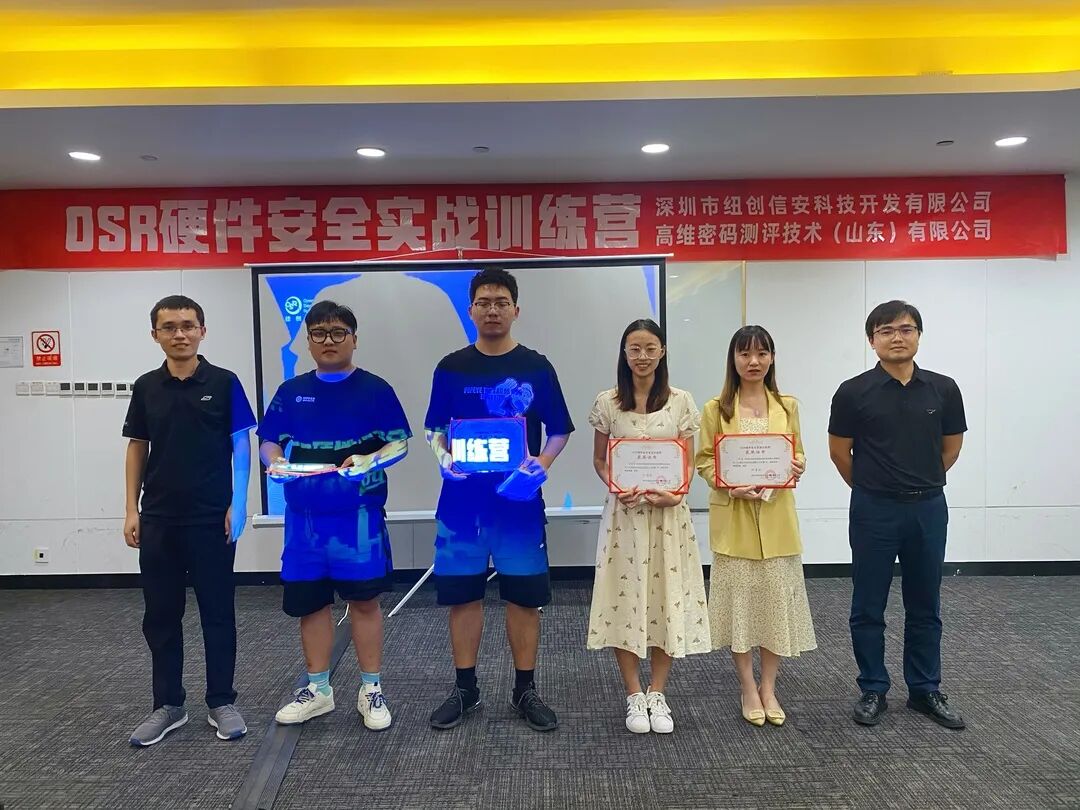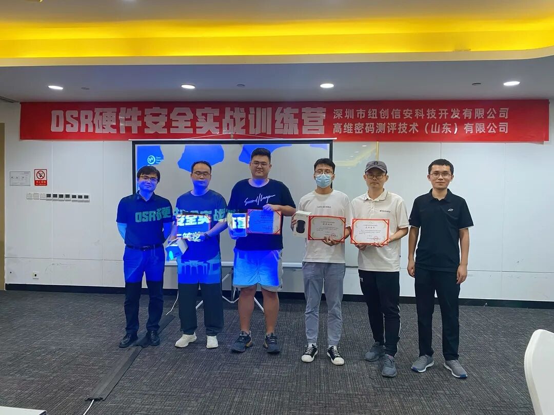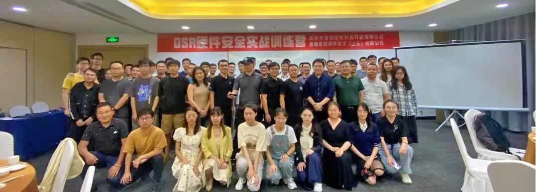 2022年8月23日,由山东区块链研究院、鹤壁密码先进技术研究院、芯动力人才计划®、深圳市纽创信安科技开发有限公司联合主办,高维密码测评技术(山东)有限公司承办的OSR硬件安全实战训练营在泉城济南开营,来自全国各地的硬件安全工程师、高等院校相关研究的老师、科研人员、在读博士生、研究生等48位学员参与了为期5天的集训。2022年8月27日,OSR硬件安全实战训练营圆满收官,并为参训学员颁发结业证书。